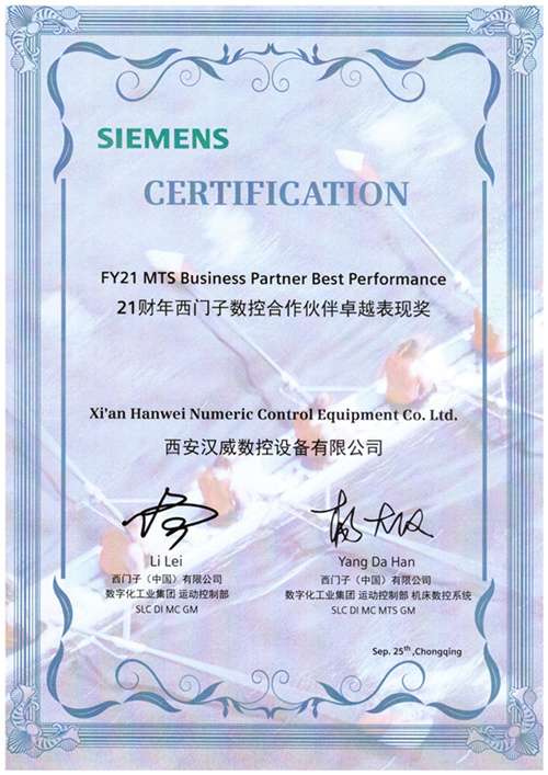 西門子數(shù)控合作卓越表現(xiàn)獎(jiǎng)